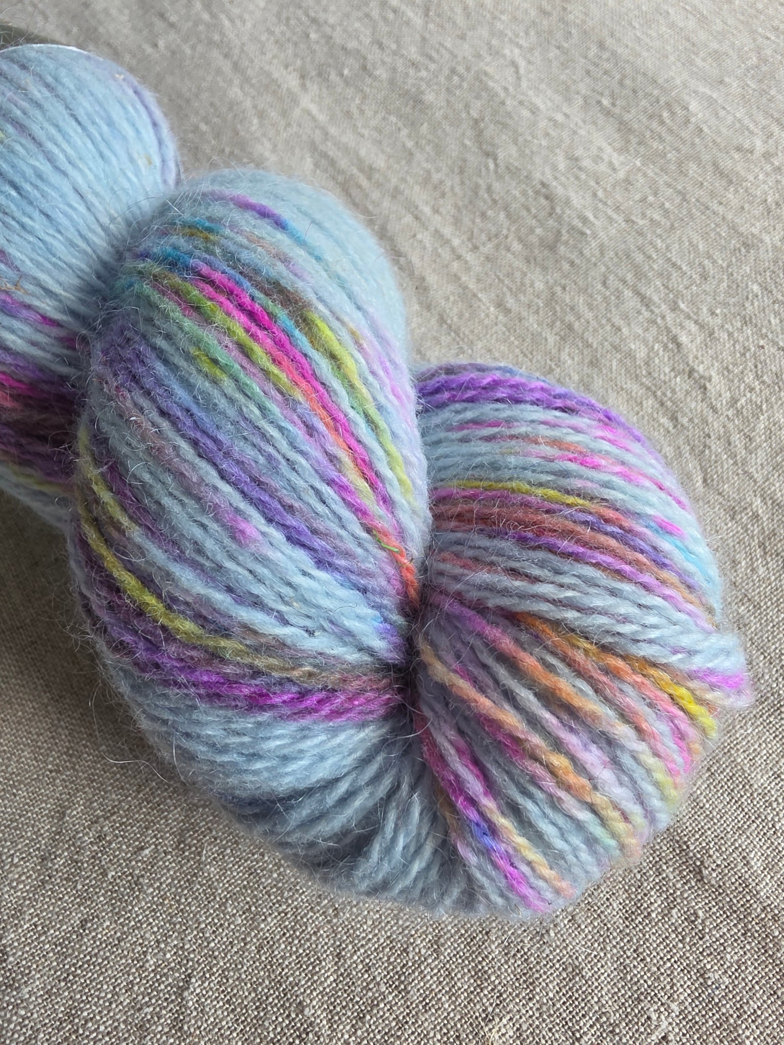 For our Special yarn we wanted to do something different, so we blended our Mohair with Spanish Merino fine quality, and we can also say that it has been spun here in Spain by Wooldreamers Mill, this is worsted spun yarn.