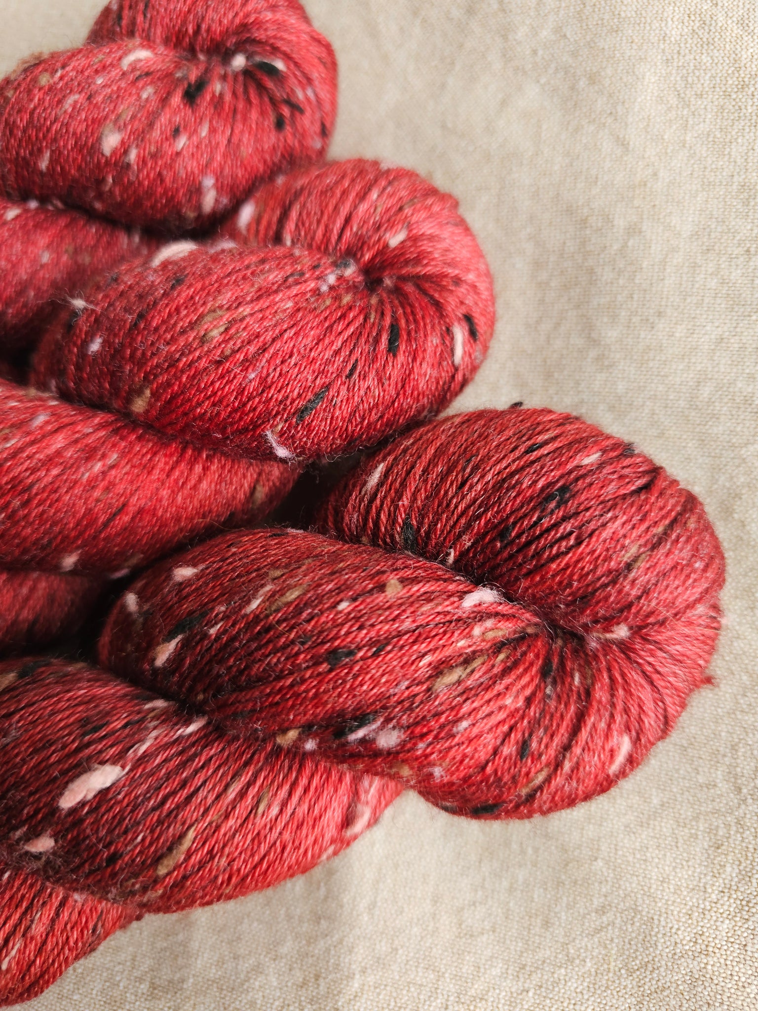 Por favor, ten en cuenta que al tratarse de un producto hecho a mano, cada madeja es única y puede presentar ligeras variaciones respecto a otras, incluso siendo de la misma tintada.